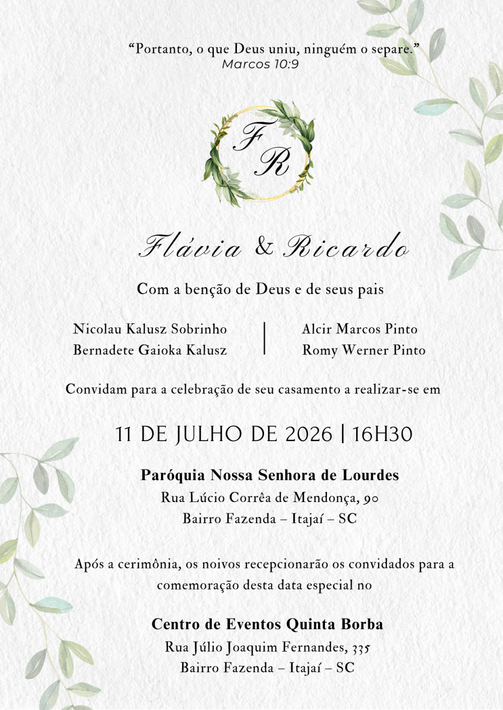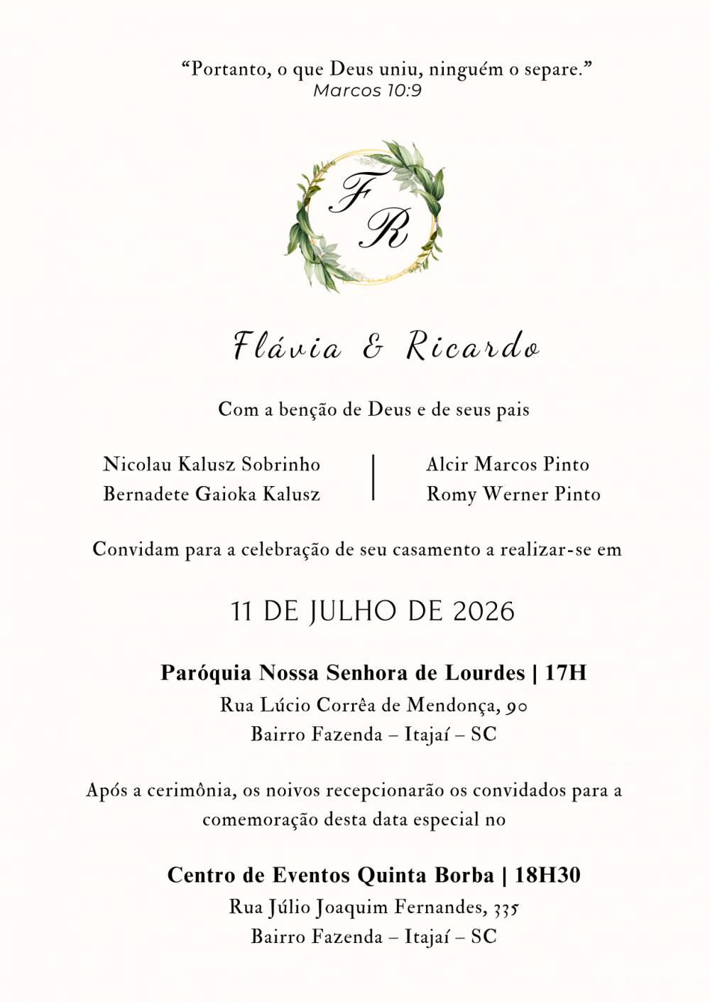 Será uma alegria imensa celebrar com você o amor, a fé, a vida e o início da nossa nova história.